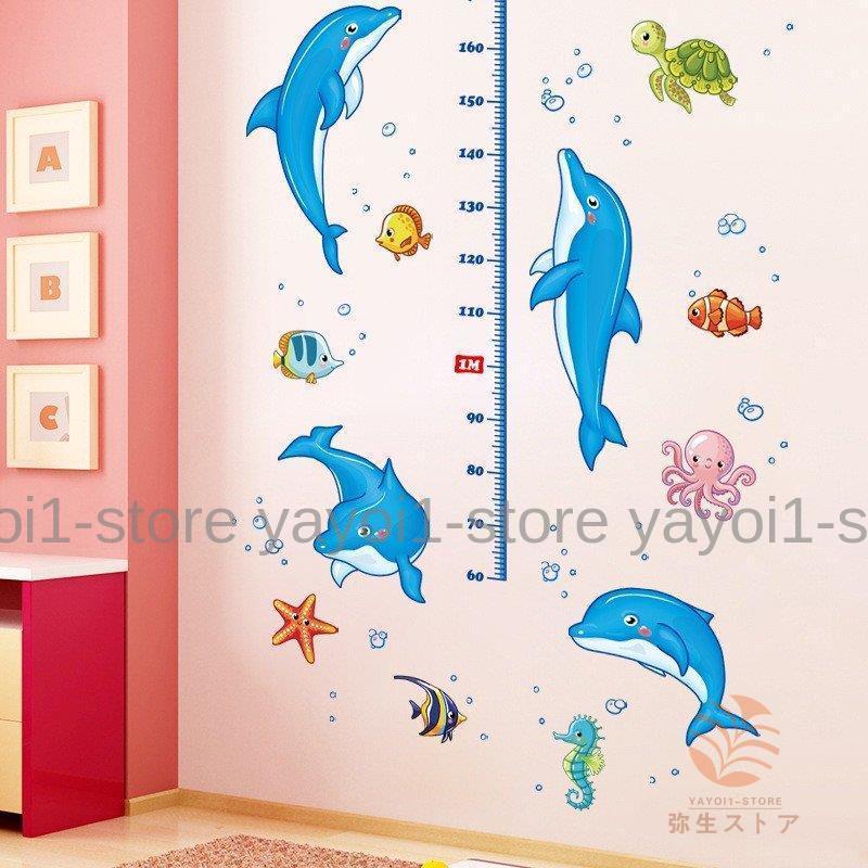 ウォールステッカー 身長計 イルカ 海の生物 イラスト付き身長計 壁紙シール かわいい ドルフィン 魚 タコ カメ タツノオトシゴ ヒトデ 子供部屋 Yfg Mizk432 弥生ストア 通販 Yahoo ショッピング